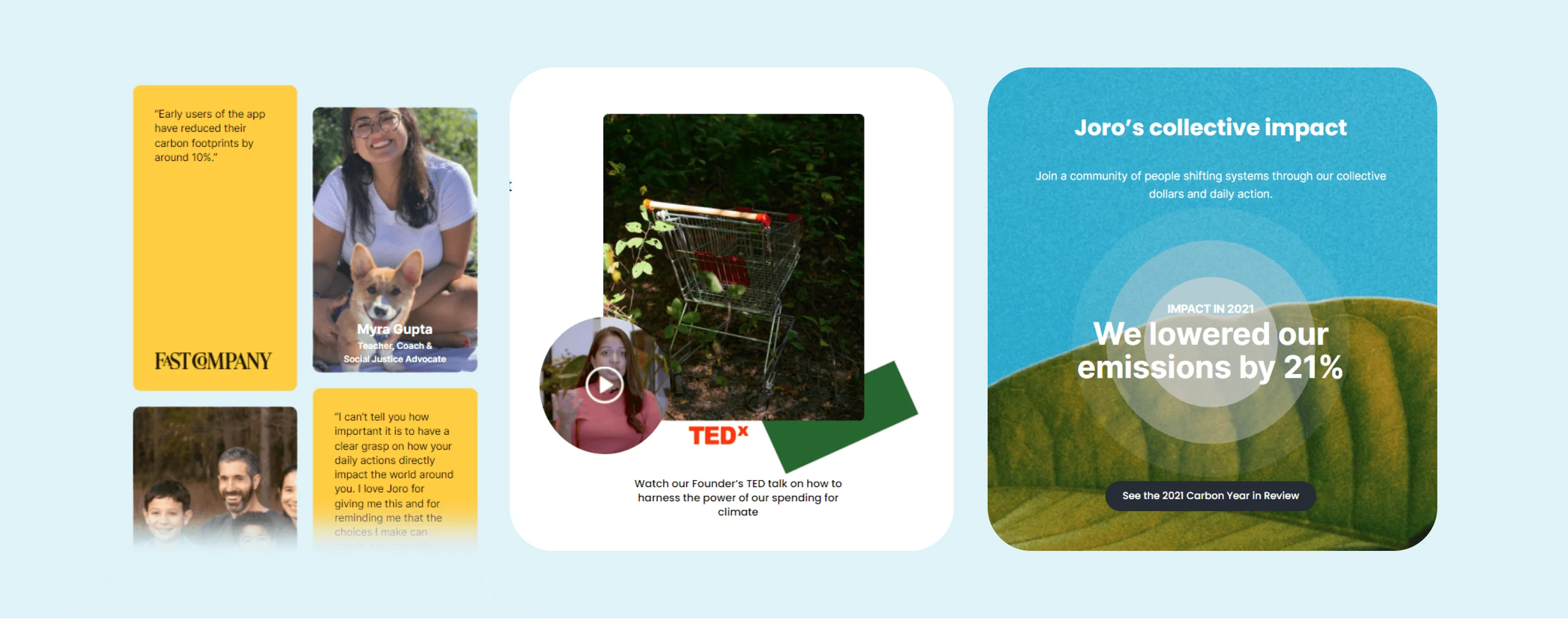 Joro is a start-up that was established with the aim of empowering people to take climate actions that matter. Specifically where their mission is to help people spend sustainably and collectively to shift systems off fossil fuels. Joro’s CEO emphasizes the need to make the app accessible for anyone to live net zero and connect with a community of like-minded people. By 2021, Joro was able to lower its emissions by 21%.